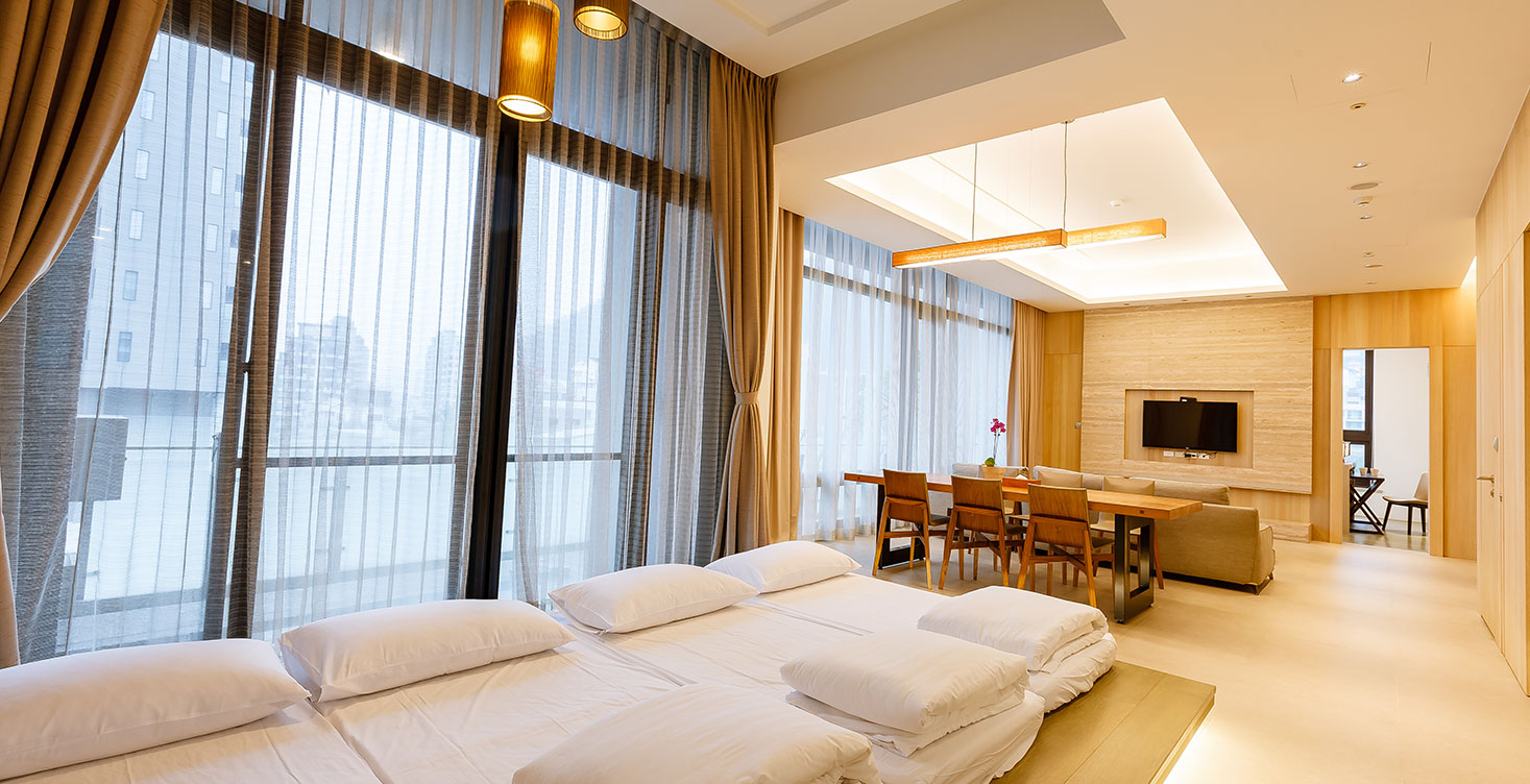 一層一戶的私密空間,北歐簡約的設計風格,是個可以與親密家人友人促膝長談的套房式空間。別出心裁屋內室外的獨享泡腳池,加上可遠望的平原景緻,陪入夢鄉的山景,時而親子、時而個性、時而浪漫,讓您同時享受飯店行政套房規格但猶如在家的放鬆,一層樓都是您自家人隱蔽獨享,商務招待會客皆宜。